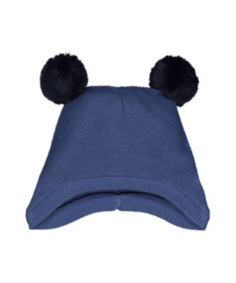 navy pom knitted trapper hat