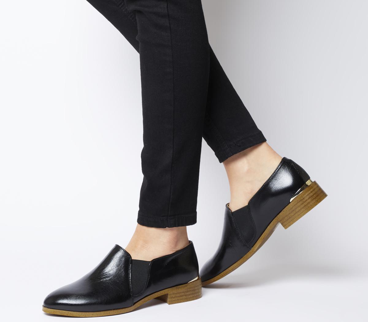 Office Womens Flatter High Vamp Elastic Gusset BLACK GROUCHO LEATHER