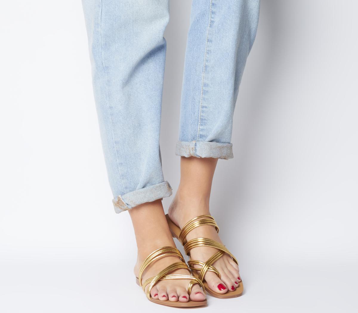 Office Ladies Gold O-Snazzy-Strippy Toe Loop Sandals, Size: 5