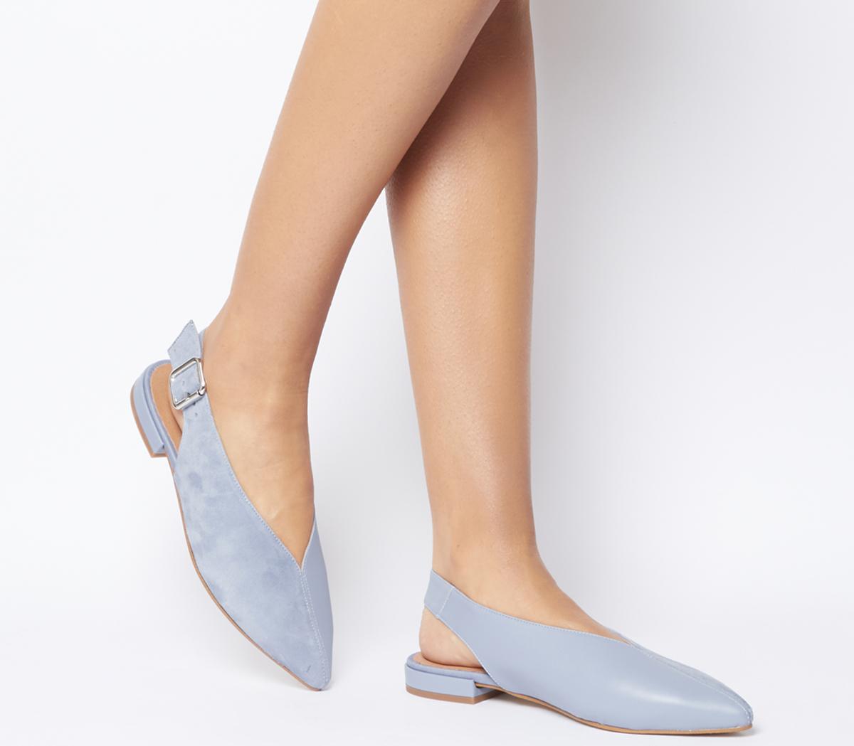 Office Flow Split Slingback Point BLUE LEATHER WITH SUEDE