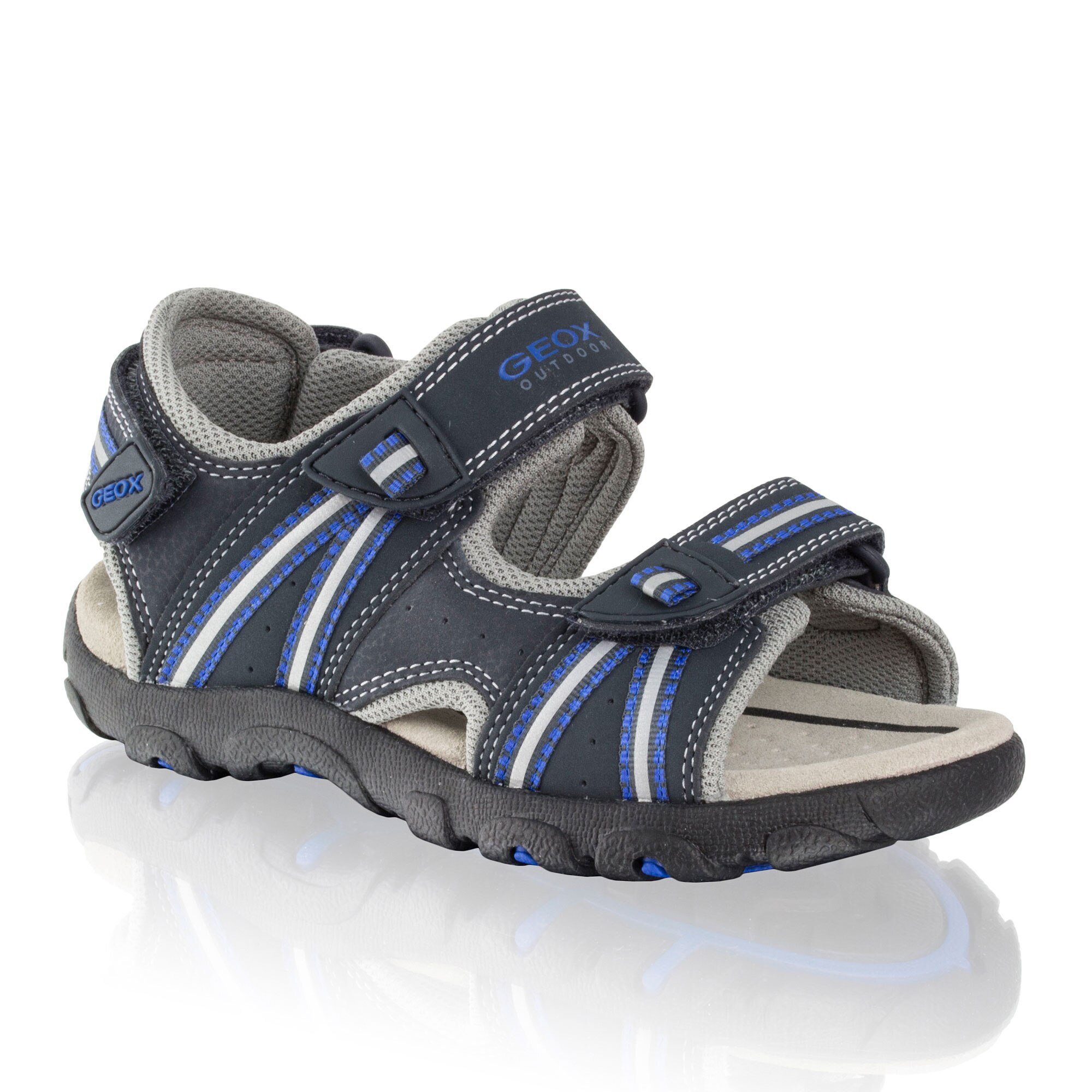 Geox Boy's Navy and Blue Strada Triple Velcro Sandals, Junior Size: UK 2