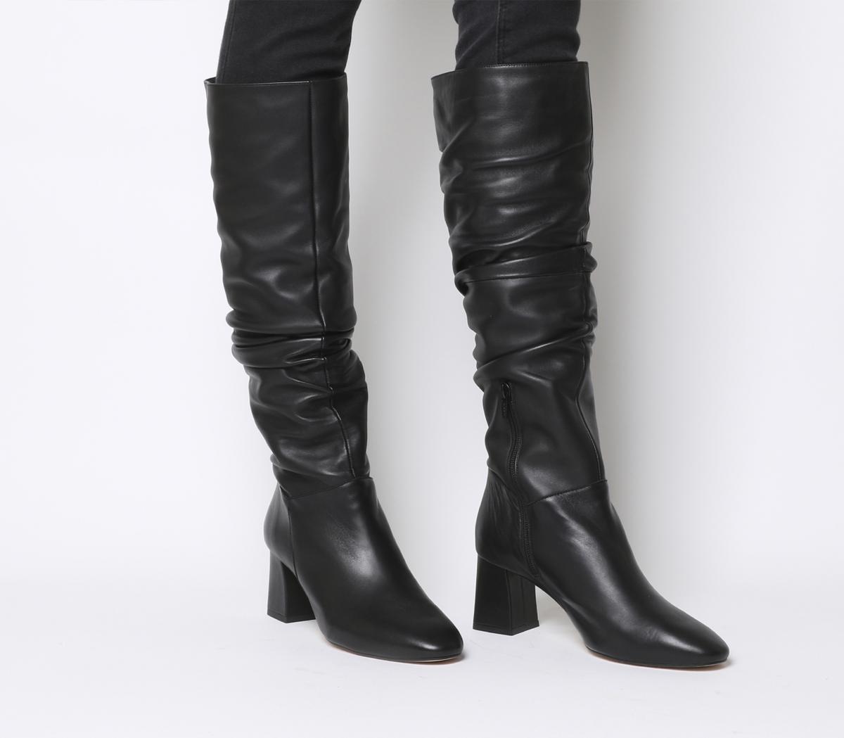 Office ShoesOffice Womens Karaboo- Leather Slouch Block Knee Boot BLACK LEATHER