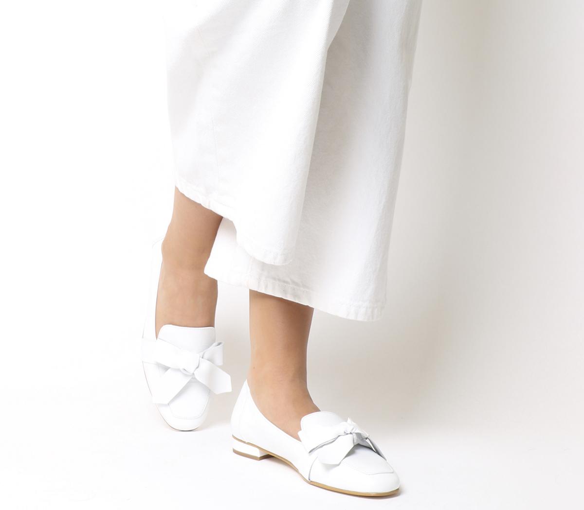 Office Womens Friend Square Toe Bow Loafer WHITE LEATHER