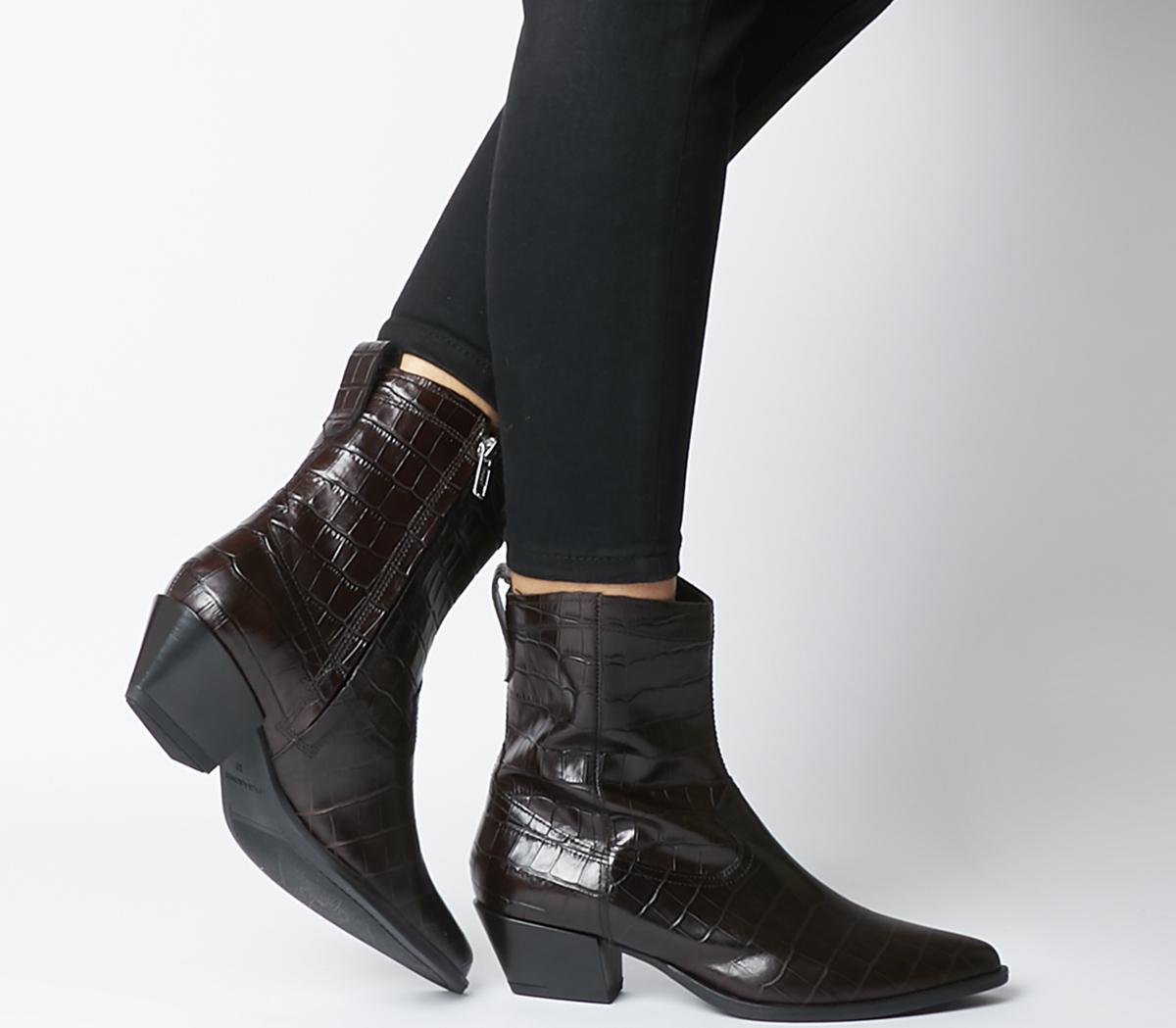 Vagabond Emily Western Block Heel BROWN EMBOSSED LEATHER