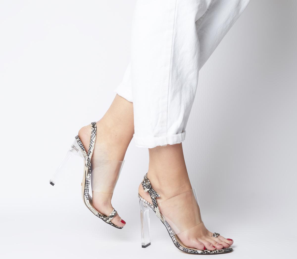 Office Ladies Transparent Snake Print Heatwave High Heels with Toe Loop, Size: 6