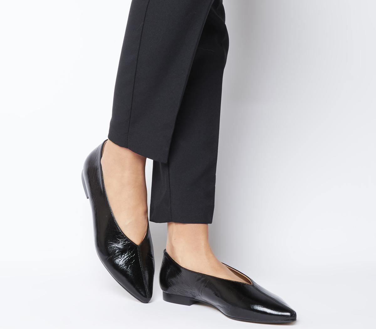 Office Womens Forgiving Pointed Ring Flat BLACK GROUCHO LEATHER