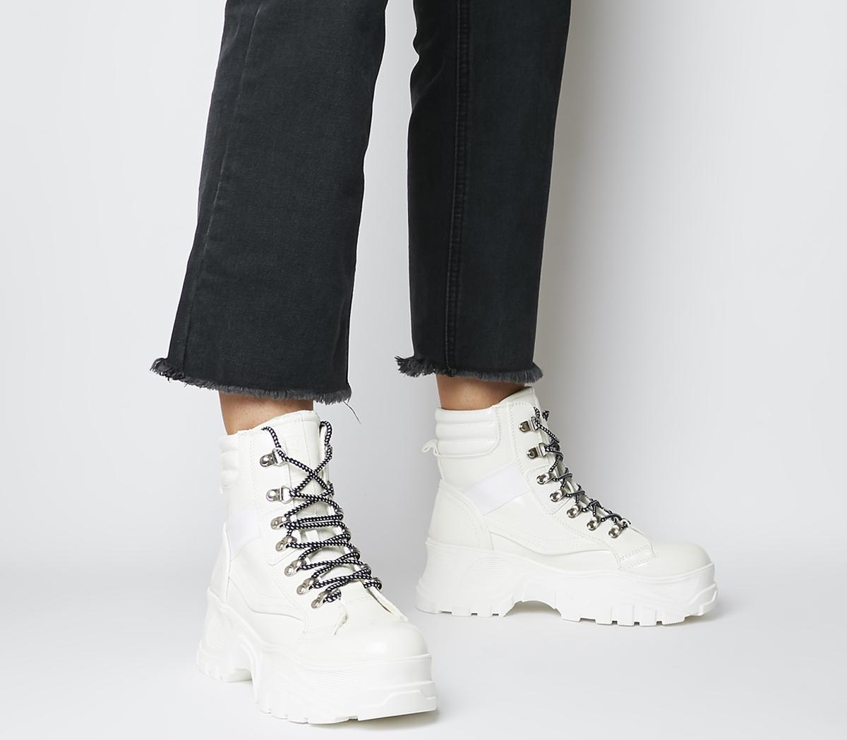 Office Flatten Lace Up Trainer WHITE WITH STRASS