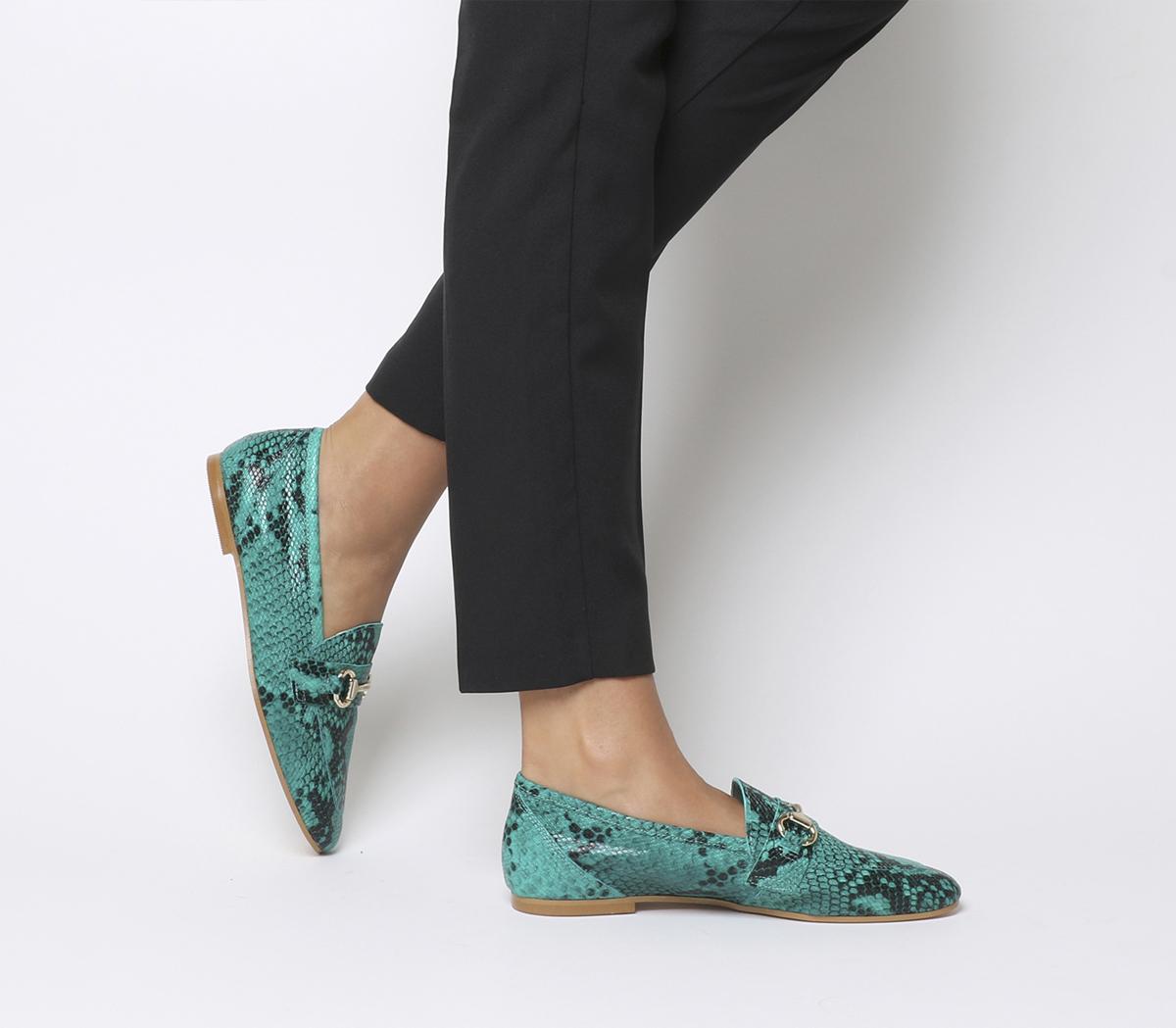 Office Ladies Green Leather Destiny Trim Loafers, Size: 5