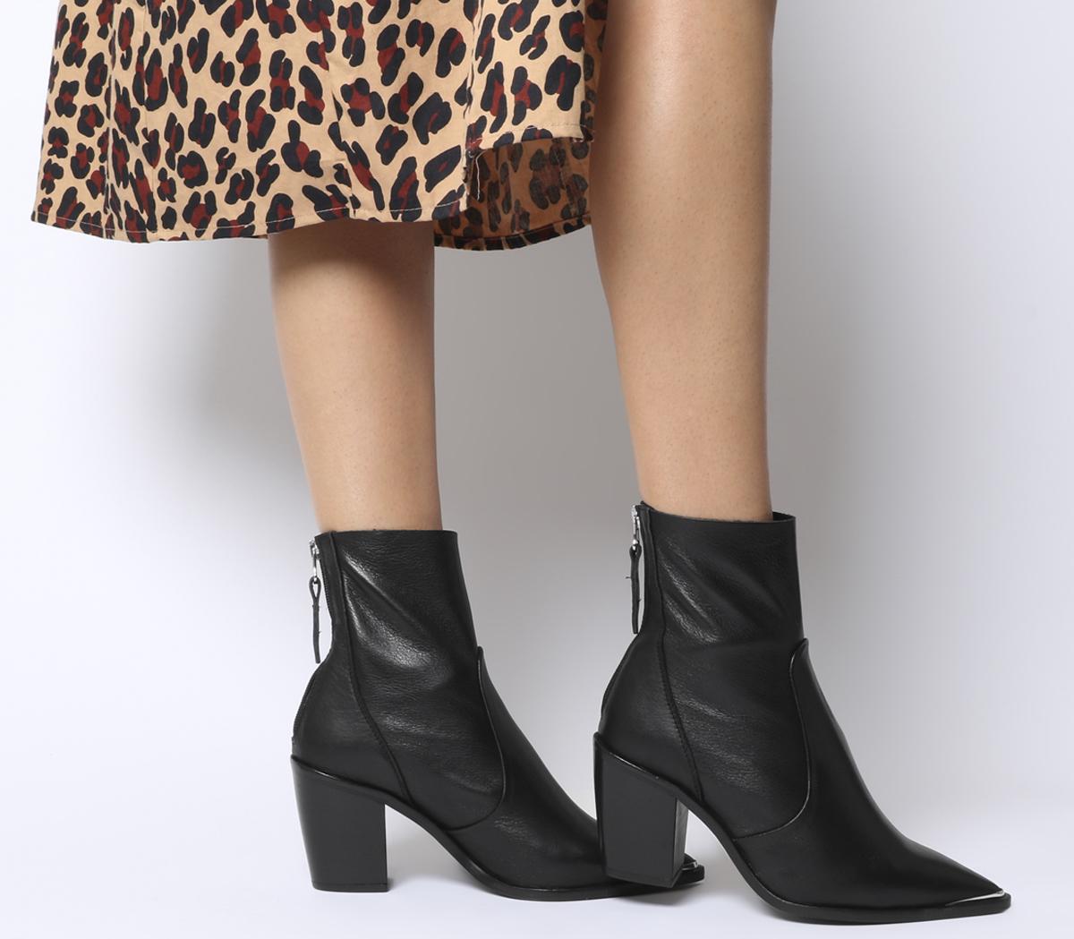 Office Womens Attack- Unlined Point Block Heel BLACK LEATHER