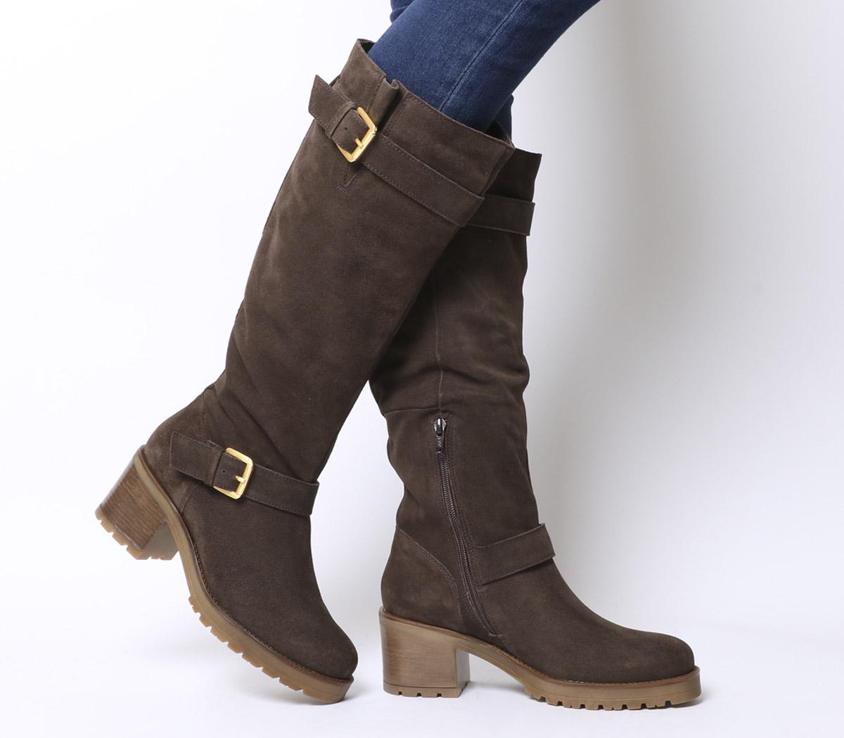 Office Womens Kadi- Casual Mid Buckle Knee Boot BROWN SUEDE