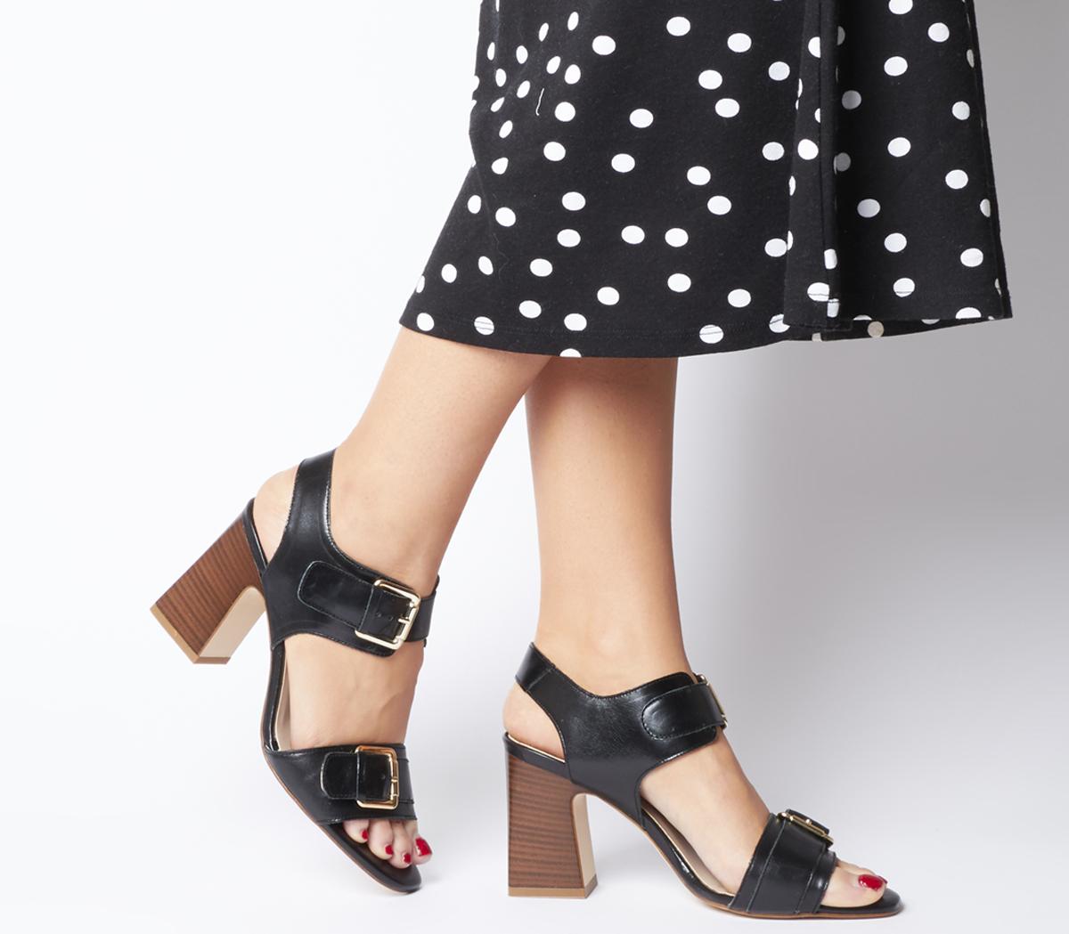 Office Mocktail- Strappy Feature Heel Sandal BLACK LEATHER