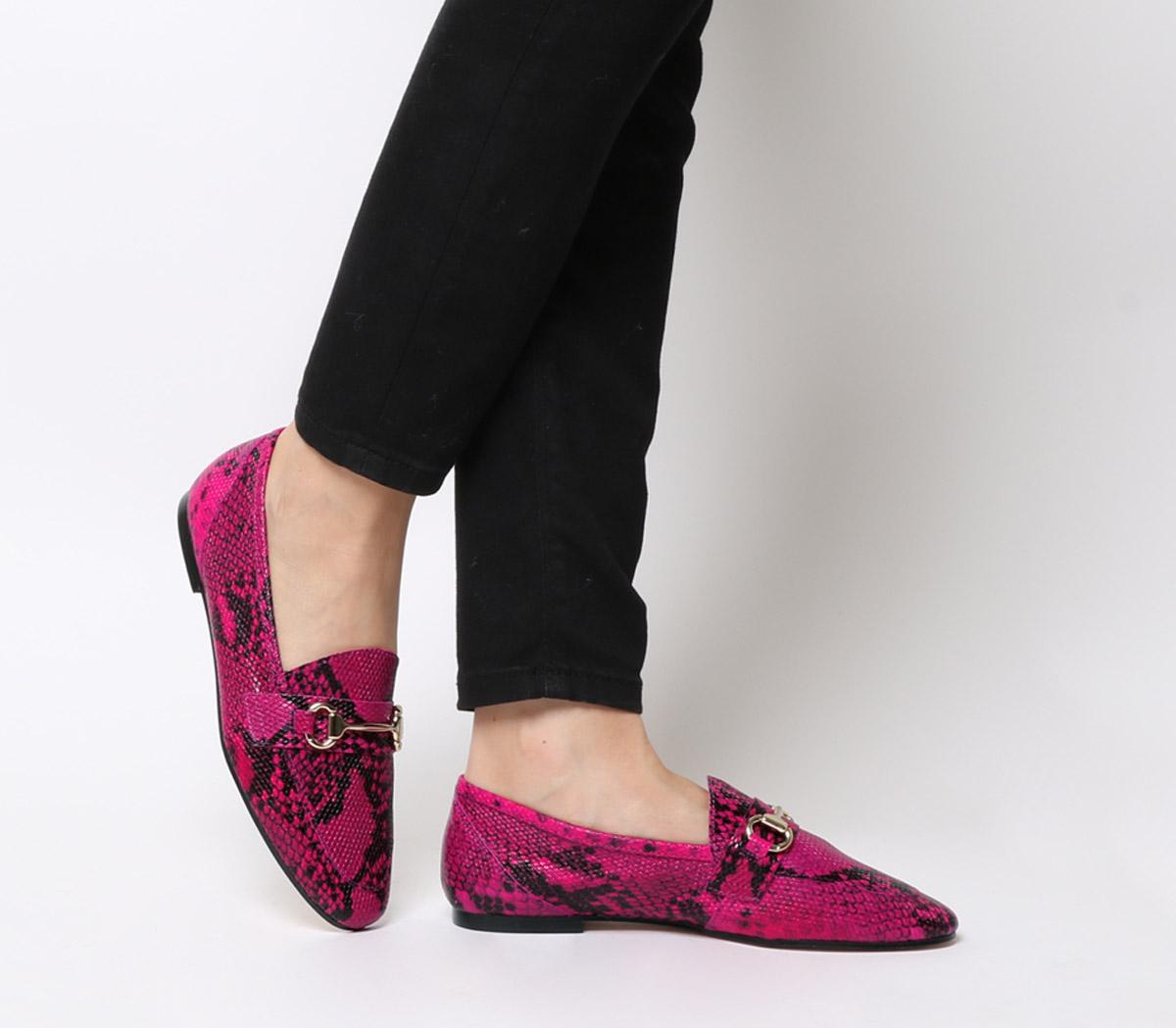 Office Ladies Pink Snake Leather Destiny Trim Loafers, Size: 6
