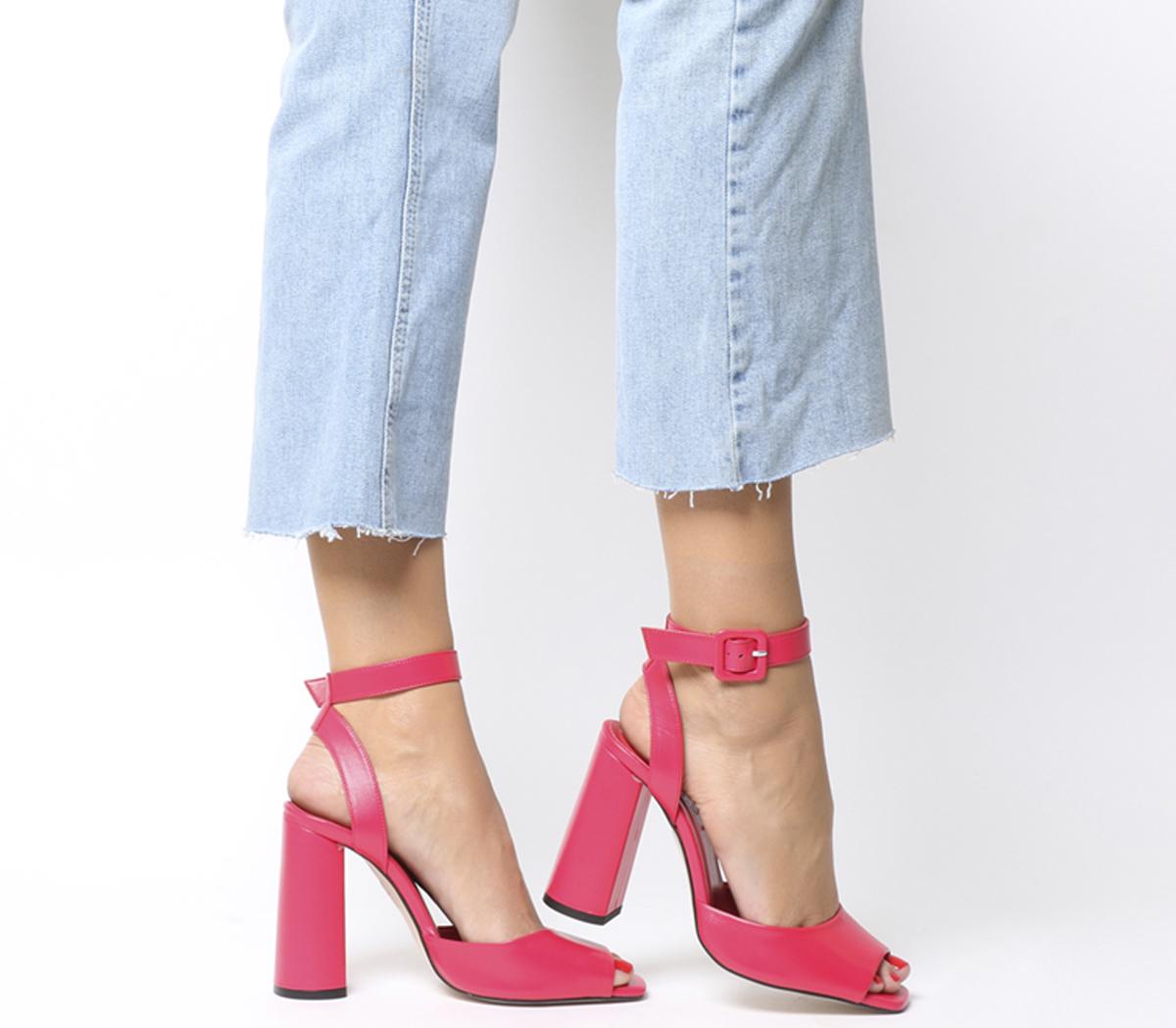 Office Womens Heartly Square Block Heel Ankle Strap PINK LEATHER